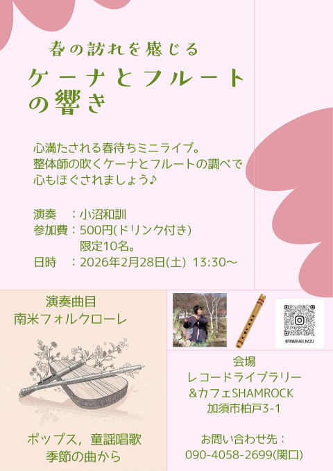 | 春の訪れを感じる♪ケーナとフルートの響き♪ | ||
